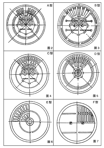 充气箱在库内排列时,原则上要求实际排列面积占总面积的比例越大越好,搅拌库和混合式均化库中心区(搅拌区),对这点要求更为重要,现提供A、B、C、D、E、F六种基本排列形式供选用。
